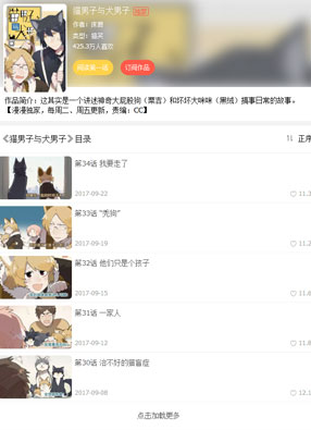 简介: 《猫男子与犬男子》漫画简述:猫国和犬国因为战乱混乱不堪,一只大屁股的狗从犬国逃到了人界,伪装成自己的祖先,居住在一个人类家庭。因为人类的文明程度和犬国没有什么太大区别,所以大屁股狗狗在人类家庭一个月就养得油光水亮,直到它遇到了一只臭屁又高傲的黑猫,它的好日子才真正到了尽头...
