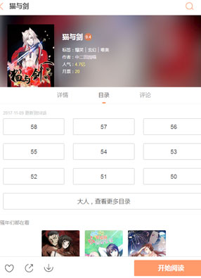 简介:《猫与剑》漫画简述:3000年前,冥界的妖怪肆虐人间,给人类带来了很大的灾祸,为了将妖怪赶回冥界,人界的道士张君浩和猫妖王联合在了一起,将妖怪封印在了冥界之内。3000年之后,因为妖力不支,猫妖王通过冥界之门坠落人间,为了尽快的关闭冥界之门,猫妖王需要找到张君浩的后人再次联手封印冥界之门,于是他找到了张君浩的孙子...