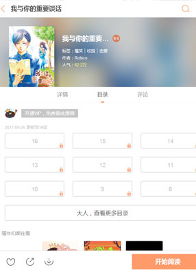 简介:《我与你的重要谈话》漫画简述:在唯美人日本漫画里,放学后的电车站,那被夕阳斜斜映照的地方,以及夕阳里那坐着的读书少年和脸红的羞涩少女。这是最经典的暗恋场景,也是一个女孩对一个男孩最羞涩的告白,可是,你有没有想过,坐在那边羞涩的少女,可能并不是为了告白而在脸红,她为的,仅仅只是一场跟踪之后的谈话。这是一部校园对口相声漫画,且看跟踪狂少女与中二逗比少年的电车站论战吧!