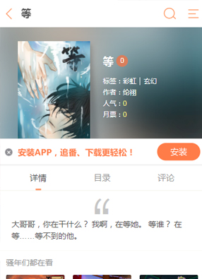开始阅读 微信阅读 简介:漫画《等》讲诉了大哥哥,你在干什么?我啊,在等她。等谁?在等……等不到的他。他们是一个永远得不到的恋人,而我就想占有你。 欢迎转载我的网站的漫画,请注明出处:羞羞漫画-https://xiuxiumh.cc/hgmh/4494.html